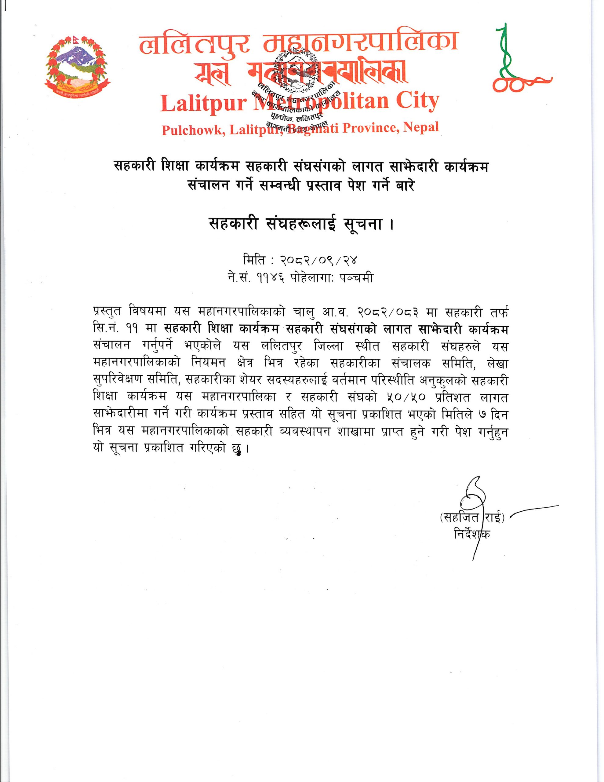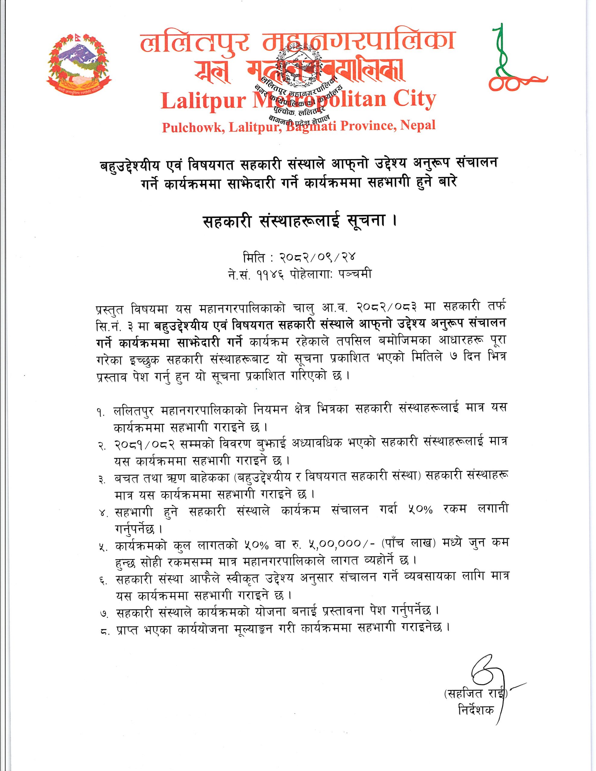 ललितपुर उप महानगरपालिका कार्यालयको सूचना